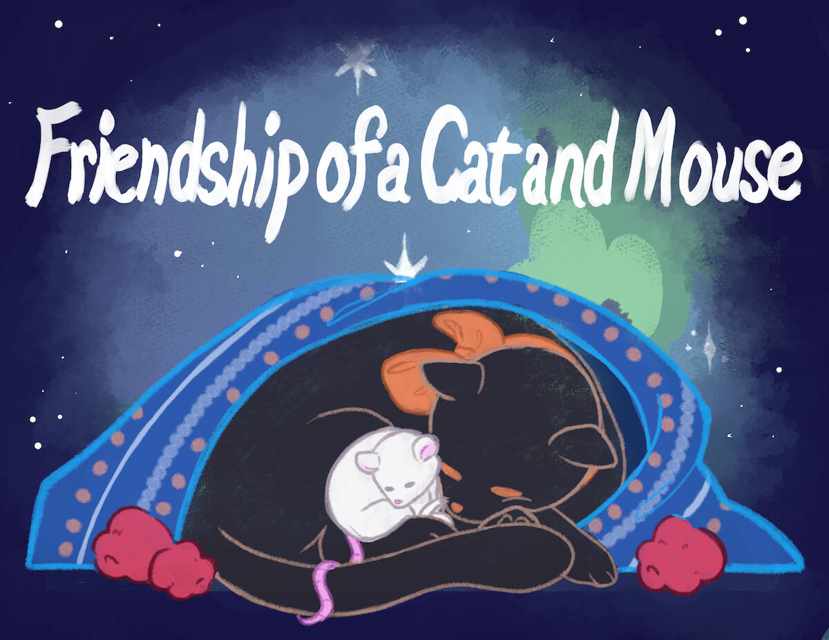 Reimagining of the fairy tale 'Friendship of a Cat and Mouse', 10 x 10 front cover